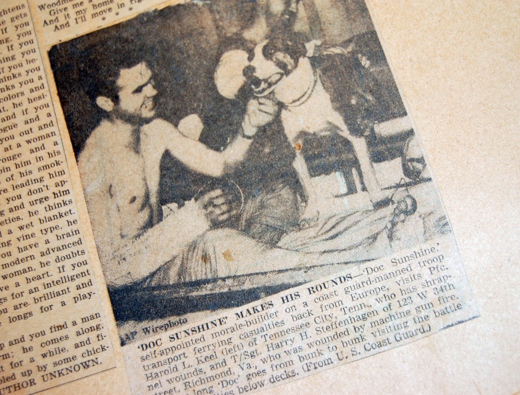 Already intrigued?Love these stories: "Doc Sunshine Makes his rounds - Doc Sunshine, the self-appointed morale-builder on a coast guard-manned troop transport ferrying casualties back from Europe, visits Pfc. Harold L. Keel (left) of Tennessee City, Tenn., who has shrapnel wounds, and T/Sgt. Harry H. Steffenhagen of 123 W 34th Street, Richmond, Va., who was wounded by machine gun fire. All day long, Doc goes from bunk to bunk visiting casualties below decks."Love this... You gotta read it.The original source of this isn't listed anywhere. What a great image though.1942 Oregonian