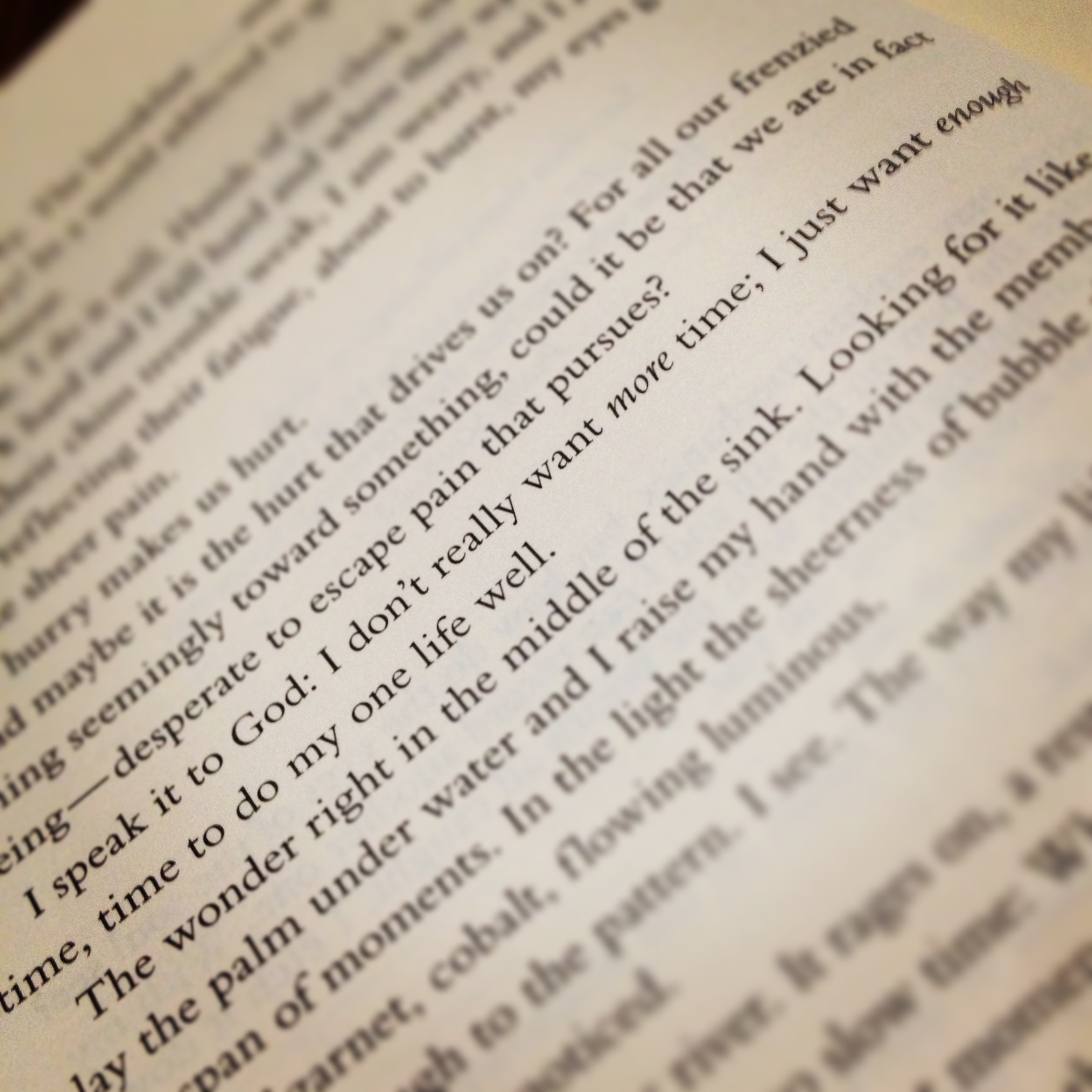 So, as Voskamp says, “I don’t want more time; I just want enough time to do my one life well.” (One Thousand Gifts Devotional. Zondervan.)