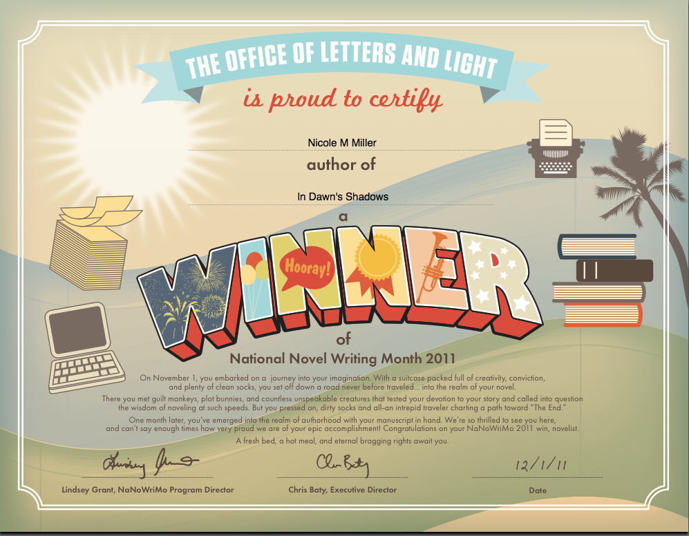 1. Deadlines and peer pressure help me get the job done. It’s true. Sometimes I need a little push to get past what distracts me. And the thought of “failing” to complete 50,000 words is what I personally needed.